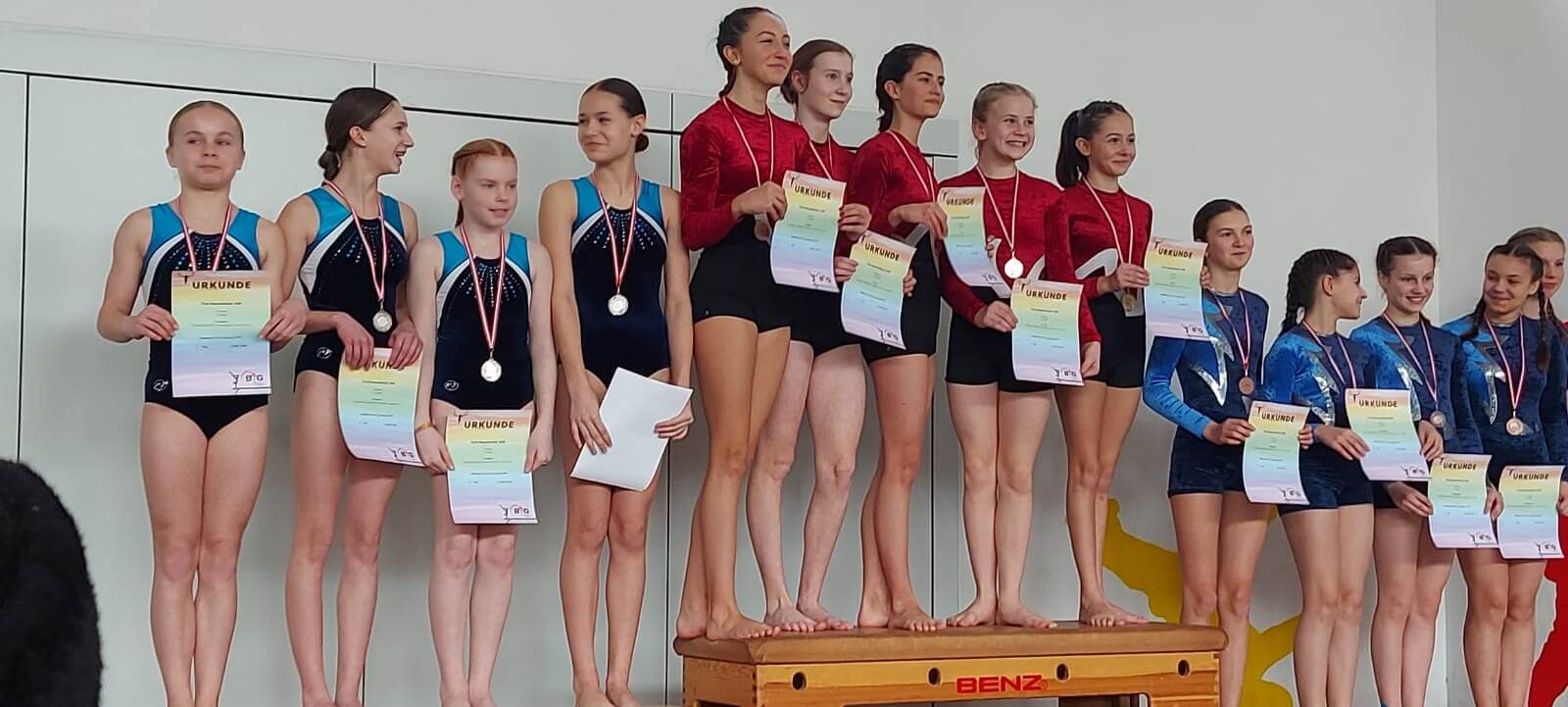 Am letzten Schultag vor den Osterferien fand in der Münchgrundhalle in Altdorf der Abschluss des Schule-Vereins Projekts 2025 zwischen der Grundschule Altdorf und der Turngemeinde Altdorf statt. Alle Kinder der Grundschule konnten beim Turnwettkampf zeigen, was sie in den vergangenen Wochen eingeübt haben. Je nach Klassenstufe standen Übungen an Balken, Boden, Barren, Reck und Sprung zur Wahl. Zudem gab es eine Miteinander-Übung, bei der mehrere Kinder aus einer Klasse gemeinsam Hockwenden, Pyramiden oder Schattenrollen zeigten. Alle Übungen waren aus dem Programm der Bundesjugendspiele. Bereits nach den Fasnachtsferien zeigten Übungsleiter der Turngemeinde die Übungen im Sportunterricht der Klassen, daraufhin trainierten die Kinder im Unterricht und durften zusätzlich an den Vereinstrainings teilnehmen. Zum Abschluss kamen mehrere Kampfrichter des Vereins in die Halle und bewerteten die Darbietungen der Schülerinnen und Schüler. Am Ende des Vormittags fand die Siegerehrung statt, bei der alle Kinder eine Urkunde erhielten. Viele bekamen sogar eine Ehrenurkunde verliehen.